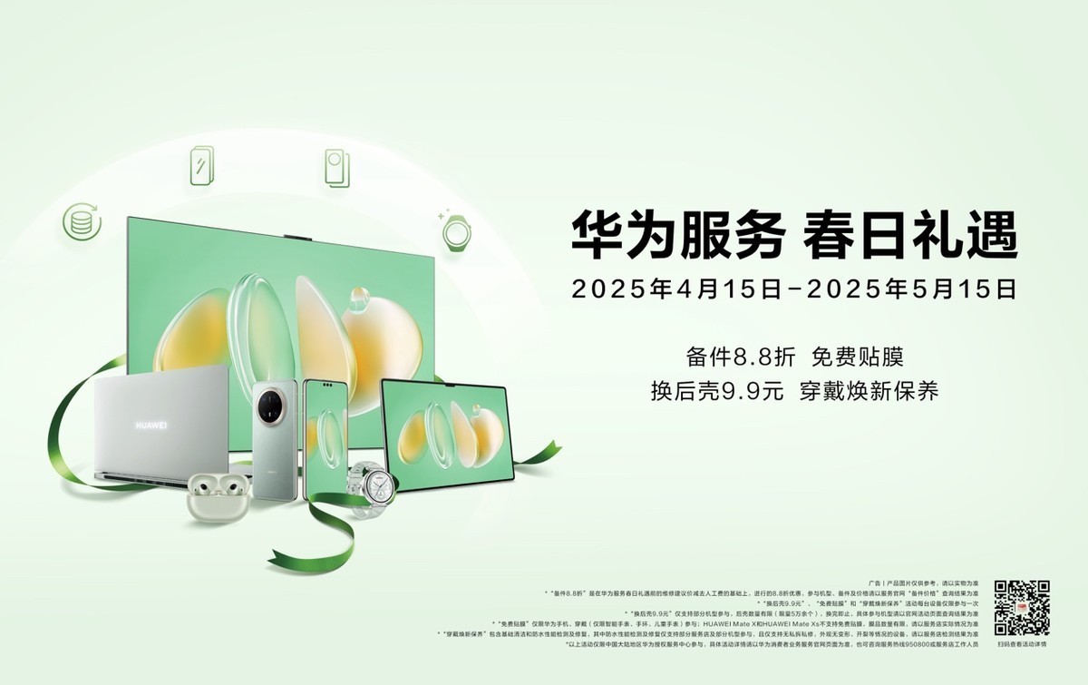 2025年4月15日至5月15日,华为开启华为就业春日礼遇行为,将品牌就业理念调度为具象化的仁和体验。行为精心盘算了多脉络的就业矩阵:既有部分备件8.8折这么的实用优惠,又有从免费贴膜的基础就业到一稔焕新留神的专科关怀;此外还提供有部分机型9.9元后壳更换的诚心之举,乃至免费咖啡茶饮、免费领取电子书为载体的相貌互动,构建起从功能赋闲到相貌共识的好意思满就业体系。看似孤独的就业行为,实则通过系统化的就业想维,共同解说了华为“以花费者为中心”的品牌理念。
